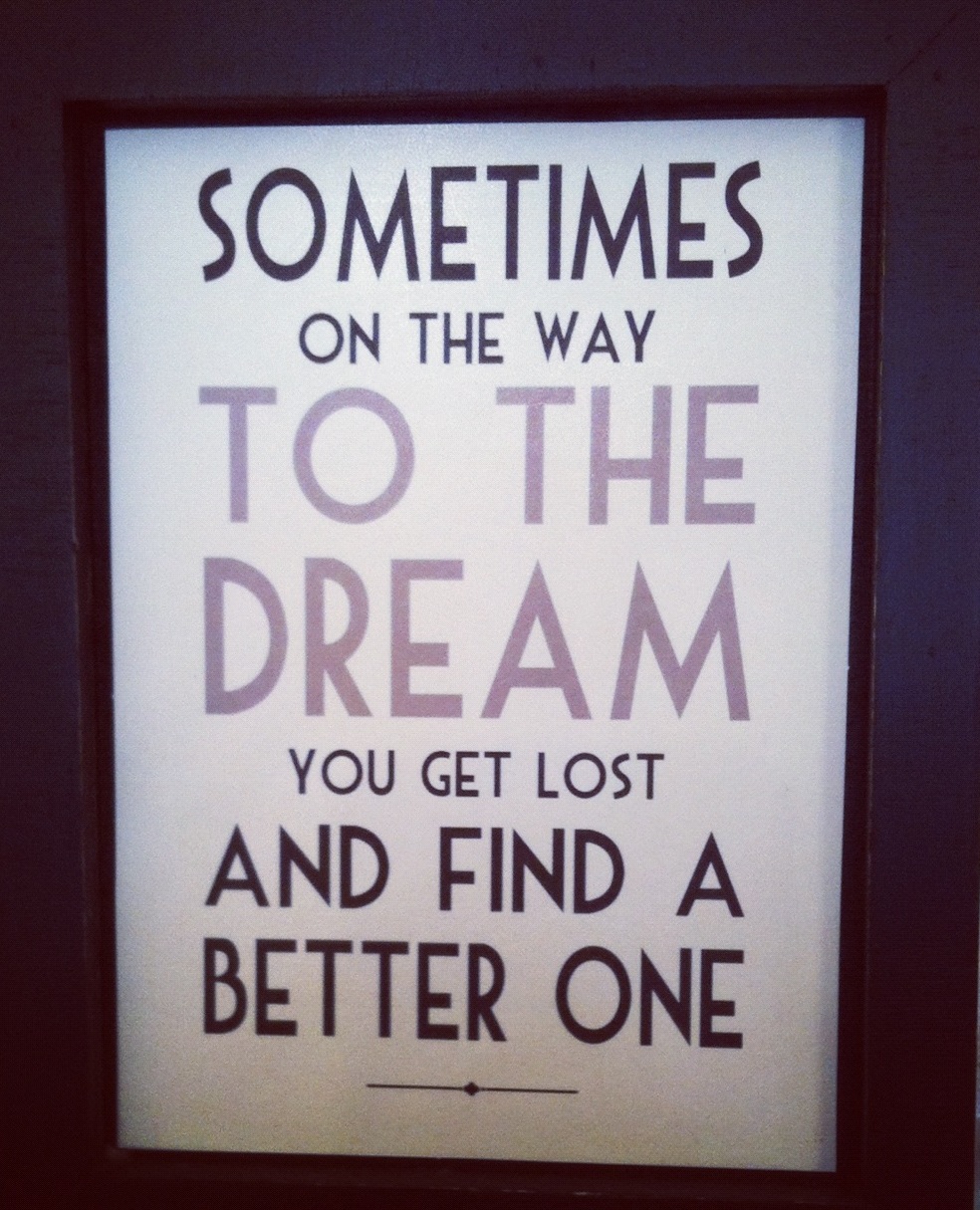 Those words are  “Sometimes on the way to the dream, you get lost and find a better one.